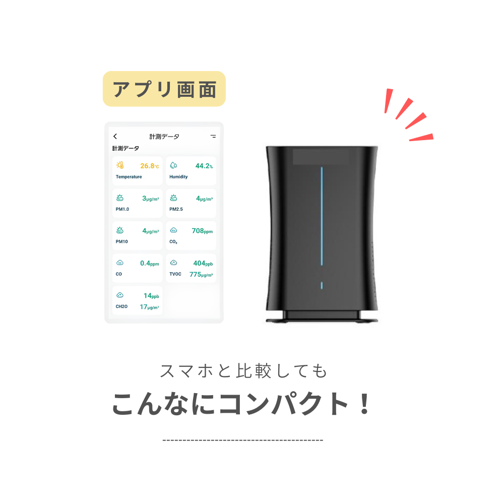 ◎ 見やすい表示設計:空気質の状態を色で直感的にチェック